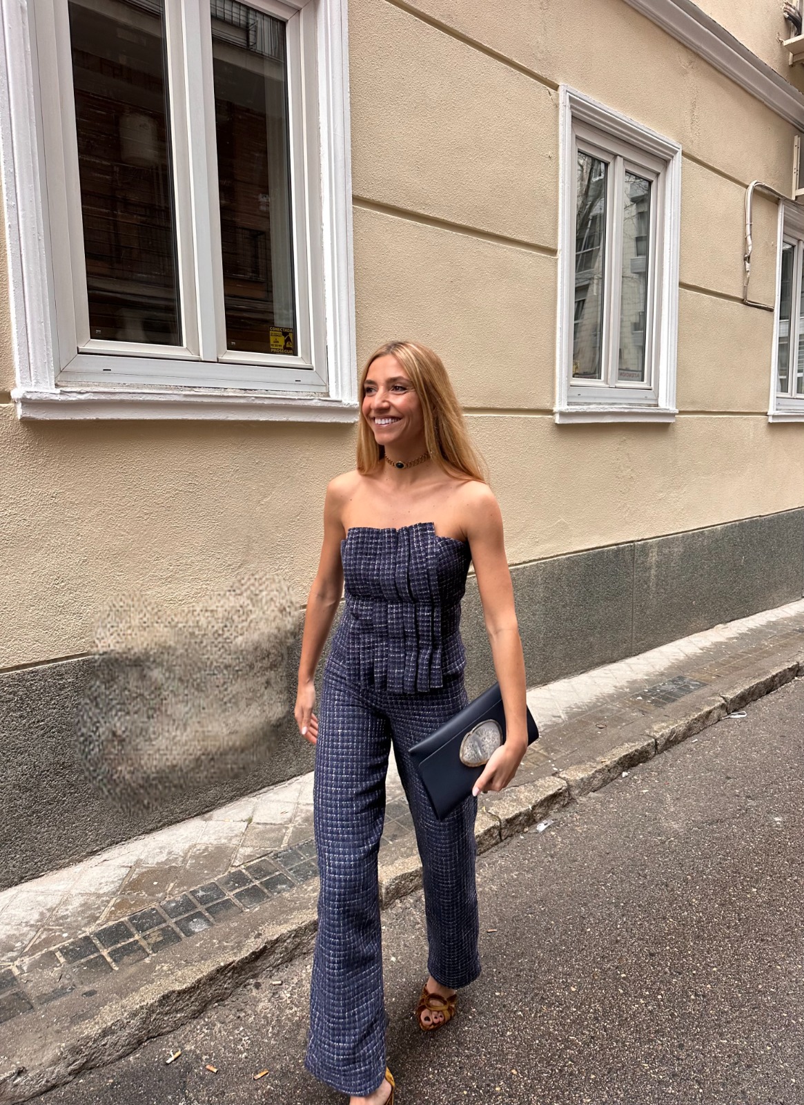 El Pantalón Gracia presenta un corte recto que estiliza la figura con elegancia. Confeccionado en tejido chanel azul, es la pieza perfecta para crear un total look junto al Top Gracia y la Chaqueta Gracia.