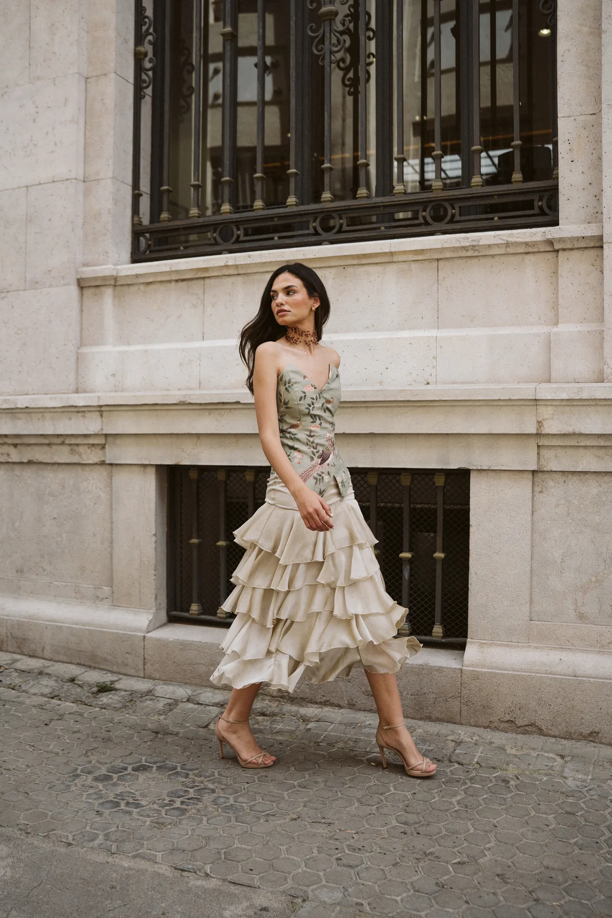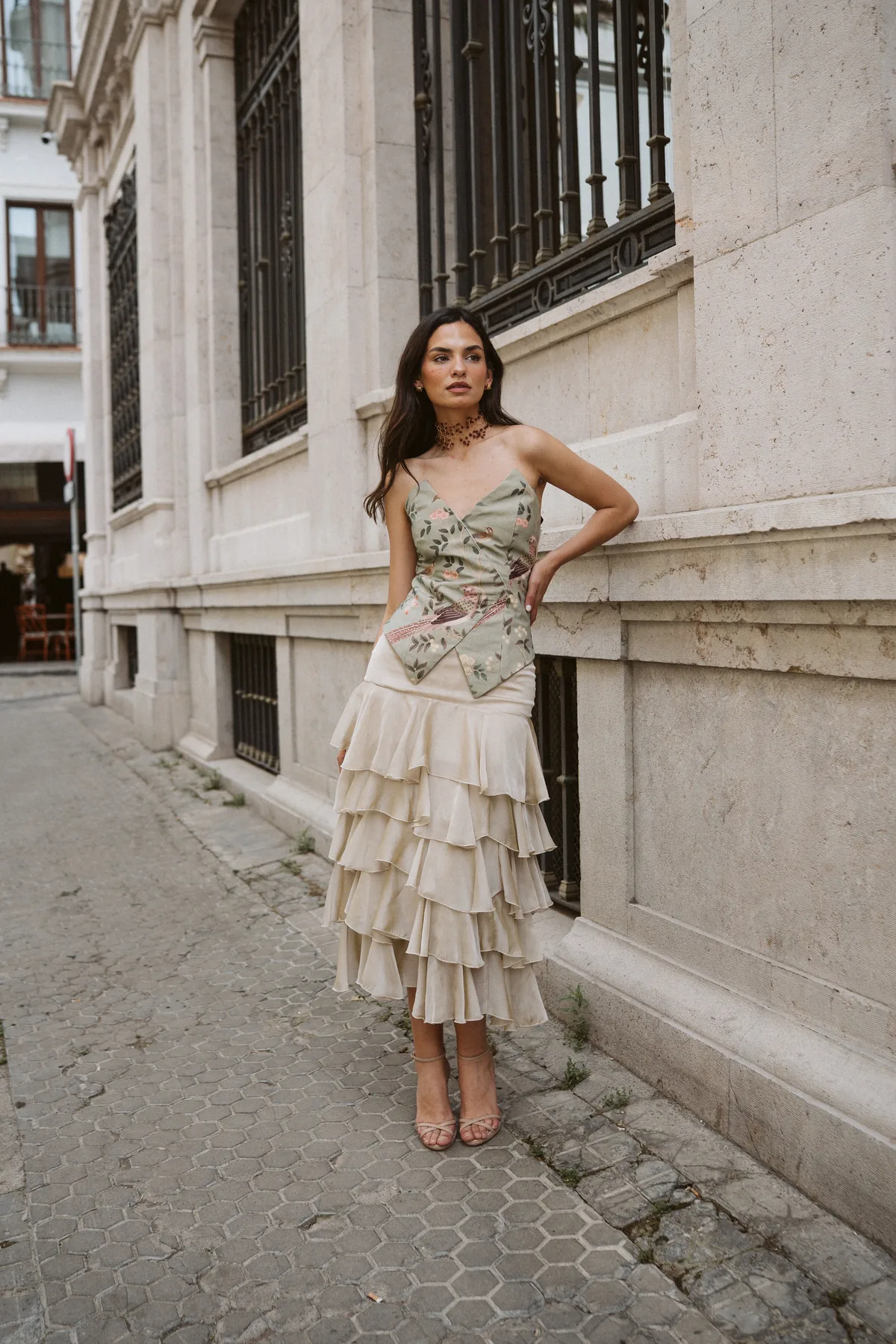 Cada prenda se confecciona bajo pedido en nuestro taller de Sevilla, pieza a pieza. Puedes elegir una talla estándar según nuestra guía de tallas o seleccionar la opción «A MEDIDA» e indicar en las notas del pedido tu contorno de pecho, cintura, cadera y tu altura con el tacón del evento. El taller adapta el patrón a tus medidas para que el top siente como un diseño pensado para ti.